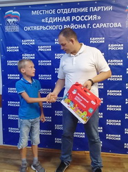 Будущим первоклассникам из многодетных и малообеспеченных семей Октябрьского района он вручил школьные наборы с тетрадями, канцелярскими принадлежностями и всем необходимым для уроков рисования и технологии.