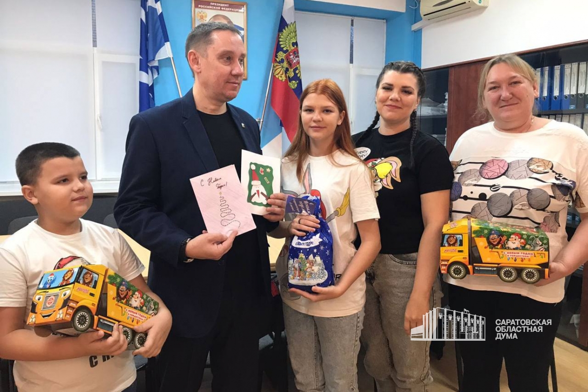 Сергей Гладков (фракция «Единая Россия») в Балашове и Романовке навестил семьи участников специальной военной операции и многодетные семьи. Вручив подарки, он получил от ребят новогодние открытки, сделанные собственными руками.