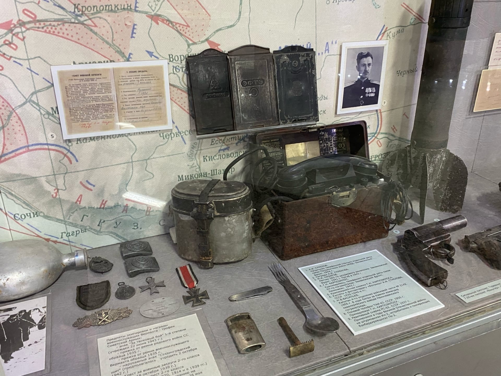 В экспозиции Саратовского историко-патриотического комплекса "Музей боевой и трудовой славы" представлены исторические реликвии участников Битвы за Кавказ: фотоаппарат «Фотокор» и кассеты к фотоаппарату, принадлежавшие Александру Ивановичу Стрелову - начальнику телефонной станции отдельной роты связи погранвойск НКВД Армянского округа; справка о награждении орденом Красного Знамени Михаила Ивановича Назарова - гвардии лейтенанта; полевой телефон ТАИ-43, красноармейская книжка, принадлежавшие старшему сержанту Георгию Николаевичу Карпозилосу.