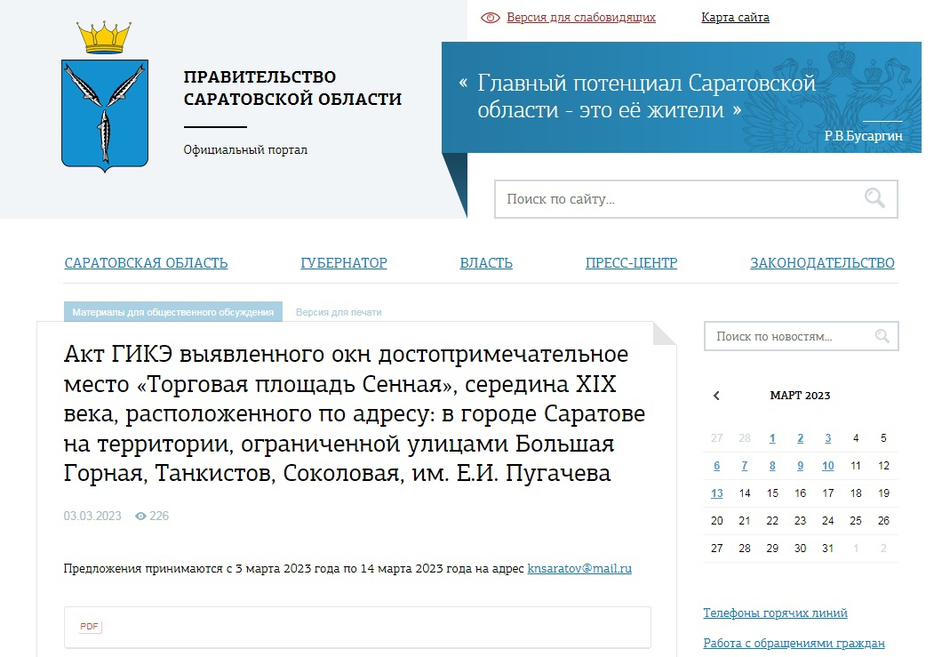 Напомним, осенью 2022 года мы подробно рассказывали про работу над этим документом, которую провёл столичный эксперт Михаил Иванов. За экспертизу местные чиновники заплатили Иванову беспрецедентно большую сумму — 710 500 бюджетных рублей. Заказчиком тогда выступало подведомственное региональному комитету культурного наследия (председатель — Владимир Мухин) ГАУК «Научно-производственный центр по историко-культурному наследию Саратовской области» (ГАУК НПЦ).