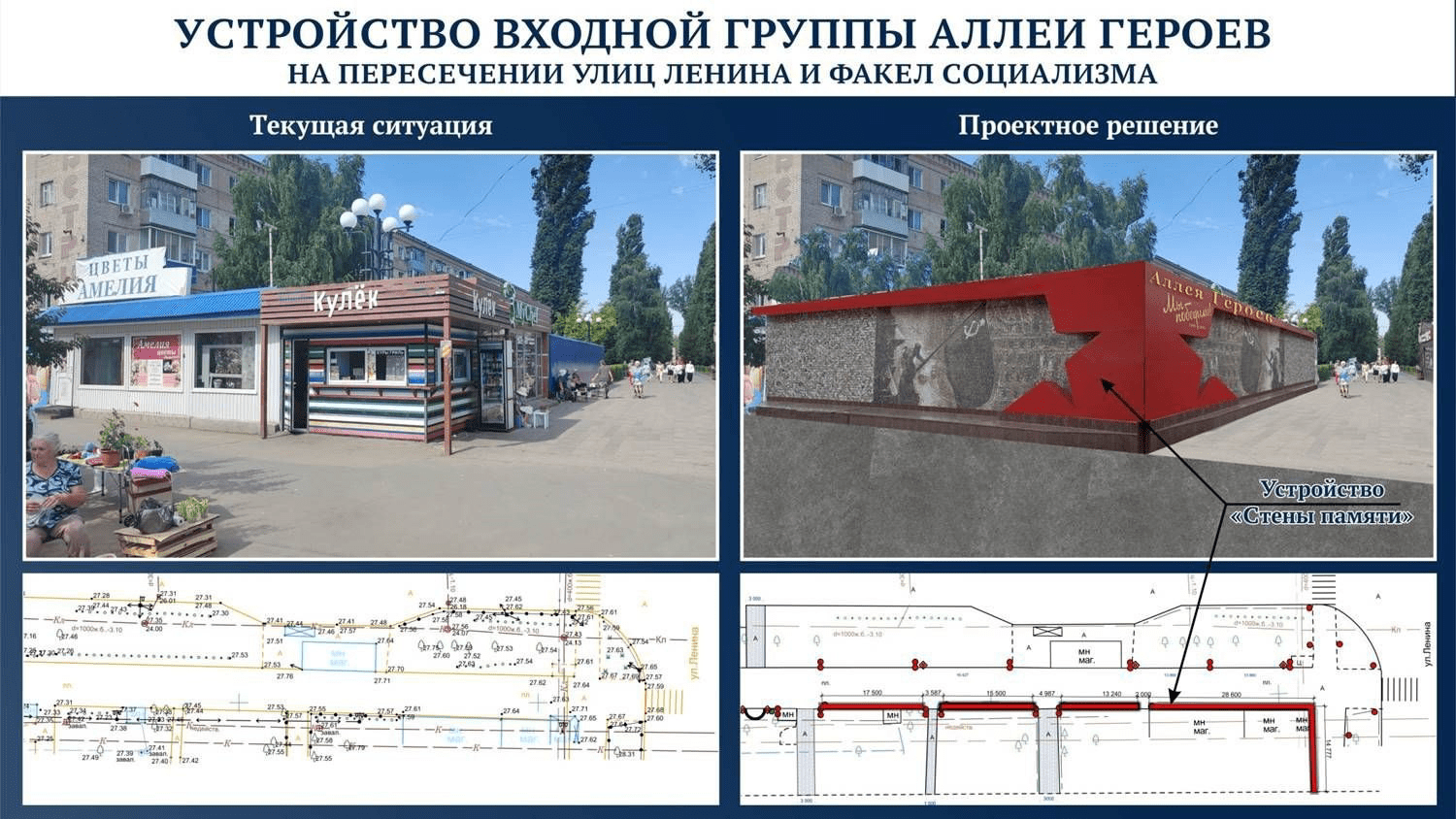 В нашем городе представлен проект по обновлению Аллеи Героев, который включает в себя памятные конструкции и новые информационные стелы.