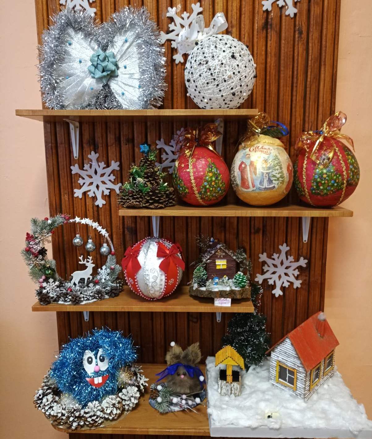 Родители воспитанников детского сада проявили творческие способности и подготовили разные новогодние поделки.