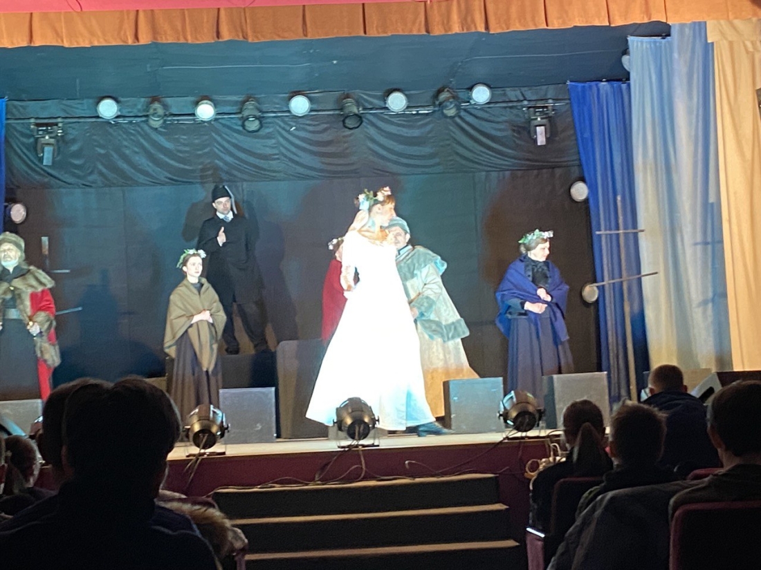 Студенты Петровского филиала СГТУ посмотрели в районном Доме культуры спектакль "Полтава" Вольского драматического театра. В основе спектакля - поэма А.С. Пушкина, которая рассказывает о любви, Родине, предательстве на фоне событий одного из периодов Северной войны. Режиссер - Алексей Козлов.