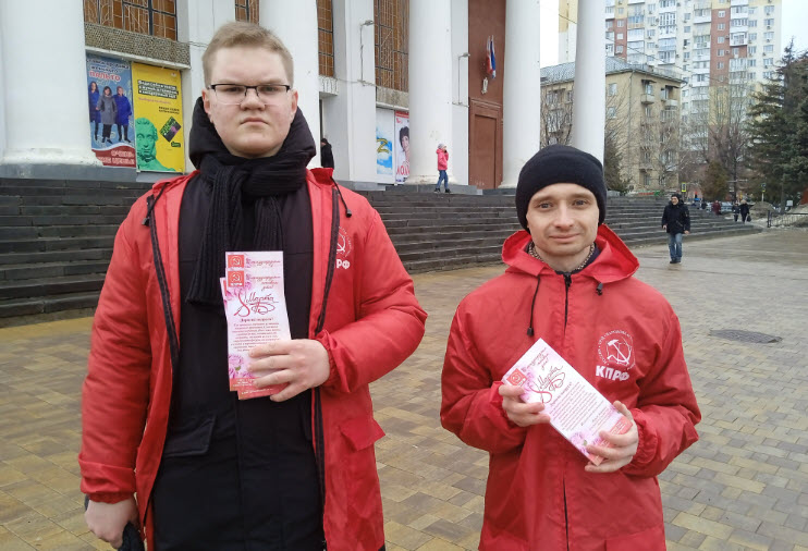 Коммунисты и комсомольцы Ленинского отделения поздравили жительниц с Международным женским днём, раздавая открытки с поздравлениями от Саратовского обкома КПРФ.