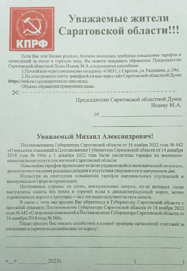 Коммунисты всегда выступали и выступают против роста оплаты ЖКУ и недобросовестной работы управляющих компаний. В Саратове активисты КПРФ продолжат проведение подобных мероприятий.