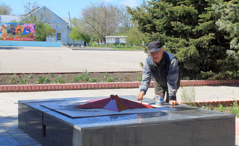 В преддверии великого праздника — Дня Победы, озинские коммунисты приняли участие в косметическом ремонте постамента Вечного огня у памятника воинам-озинцам не вернувшимся с войны.