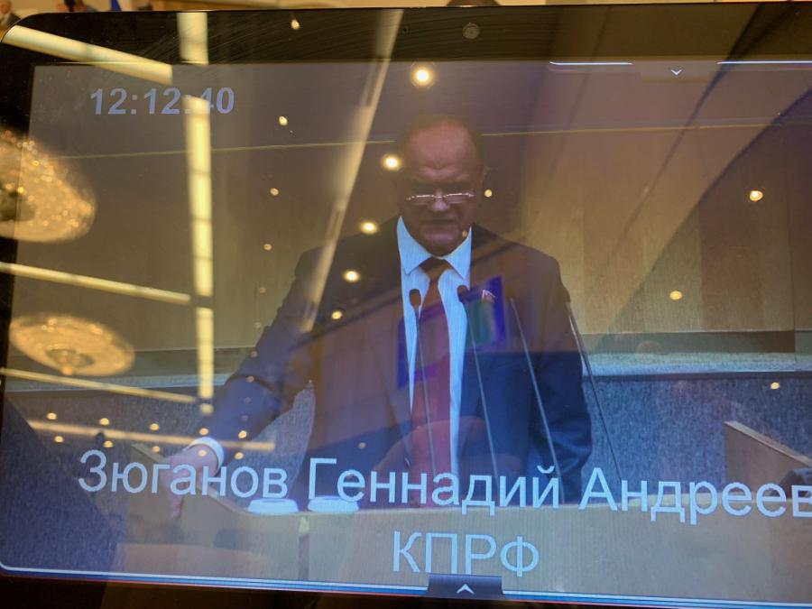 Перечислив ключевые непринятые законодательные инициативы КПРФ, Зюганов предупредил партию власти с трибуны Госдумы : « Сегодня наступило то время, и если мы сейчас не примем исчерпывающие решения, начнёт разложение общества ».