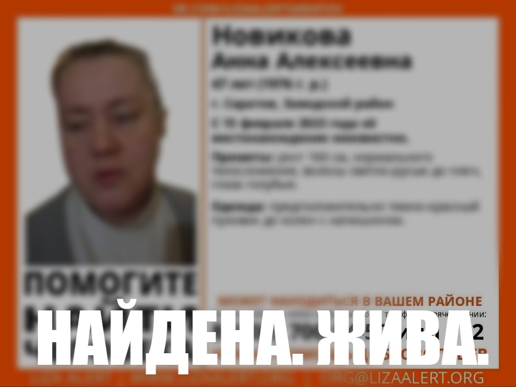 Анна Новикова ушла из дома 15 февраля 2023 года и пропала . Накануне стало известно, что женщина найдена живой.