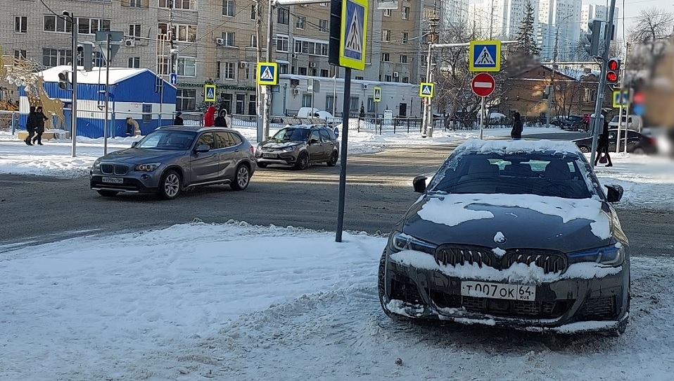 Как сообщил в редакцию ИА "Взгляд-инфо" очевидец, неизвестный автолюбитель припарковал BMW 5 (госномер Т007ОК64) на тротуаре, преградив гражданам путь к пешеходному переходу.