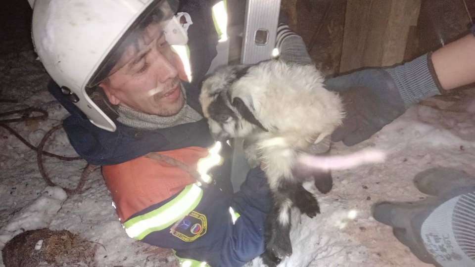 Доставать козленка из трехметрового колодца пришлось спасателям