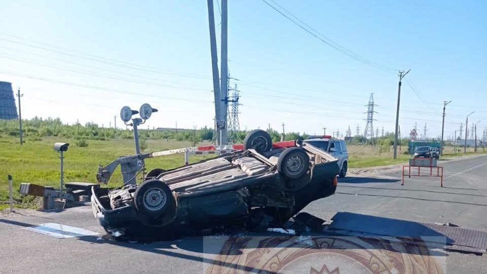 В итоге машина въехала в шлагбаум железнодорожного переезда и опрокинулась.