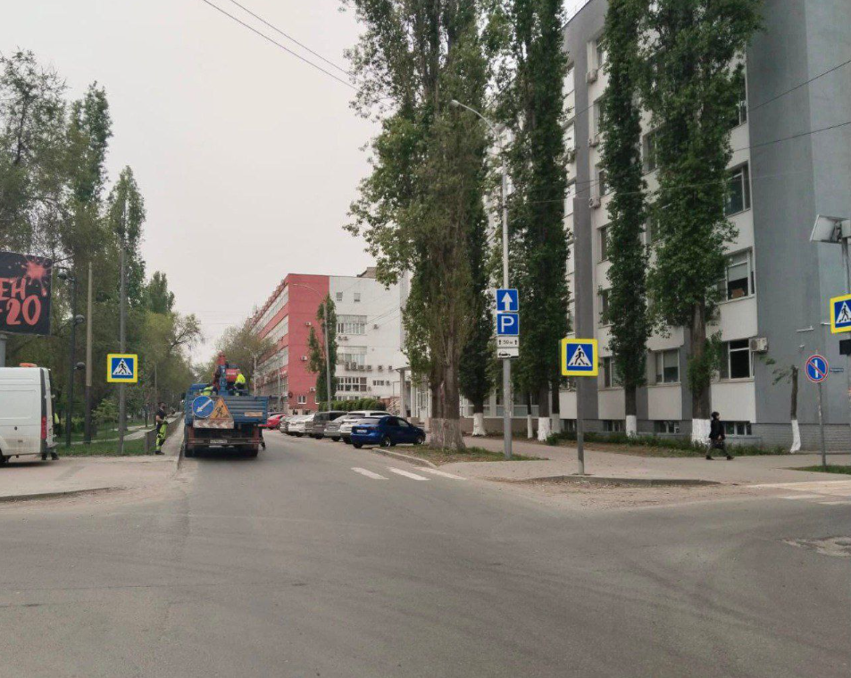 - ул. Ипподромная, д.16; - ул. Гвардейская, д.42 А; - ул. Гвардейская, д.46 А; - ул. 2-я Нагорная (Ново-Астраханское шоссе, д.39а); - ул. Новоузенская/ул. Миротворцева; - ул. Шелковичная, д.168А; - ул. Чапаева/ул. Посадского; - ул. Рахова/ул. Посадского; - ул. Рахова/ул. Зарубина; - 7-й Динамовский проезд, вблизи д. 29/45; - ул. Провиантская на пересечении с ул. Рабочая; - ул. Посадского/ул. Пугачева; - ул. Лермонтова/ул.Челюскинцев; - ул. Челюскинцев, д.12 А.Мероприятия проведены в соответствии с проектами по организации дорожного движения и решениями комиссии по обеспечению безопасности дорожного движения. Работы выполнены в рамках национального проекта «Безопасные качественные дороги». В дальнейшем на данных участках также появятся мигающие светофоры желтого цвета типа Т.7, используемые как активные световые индикаторы пешеходного перехода, а также для зон требующих повышенного внимания.