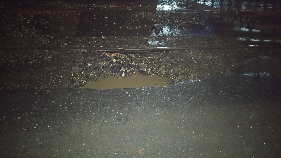 По словам женщины, ее машина попала в яму напротив дома № 66/72 по улице Степана Разина (рядом с Кировским трамвайным депо).