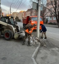 Сегодня, 3 января, коммунальной службой Октябрьского района проводятся работы по очистке прилотковой части дорожного полотна, механизированному подметанию тротуаров и подбору случайного мусора.