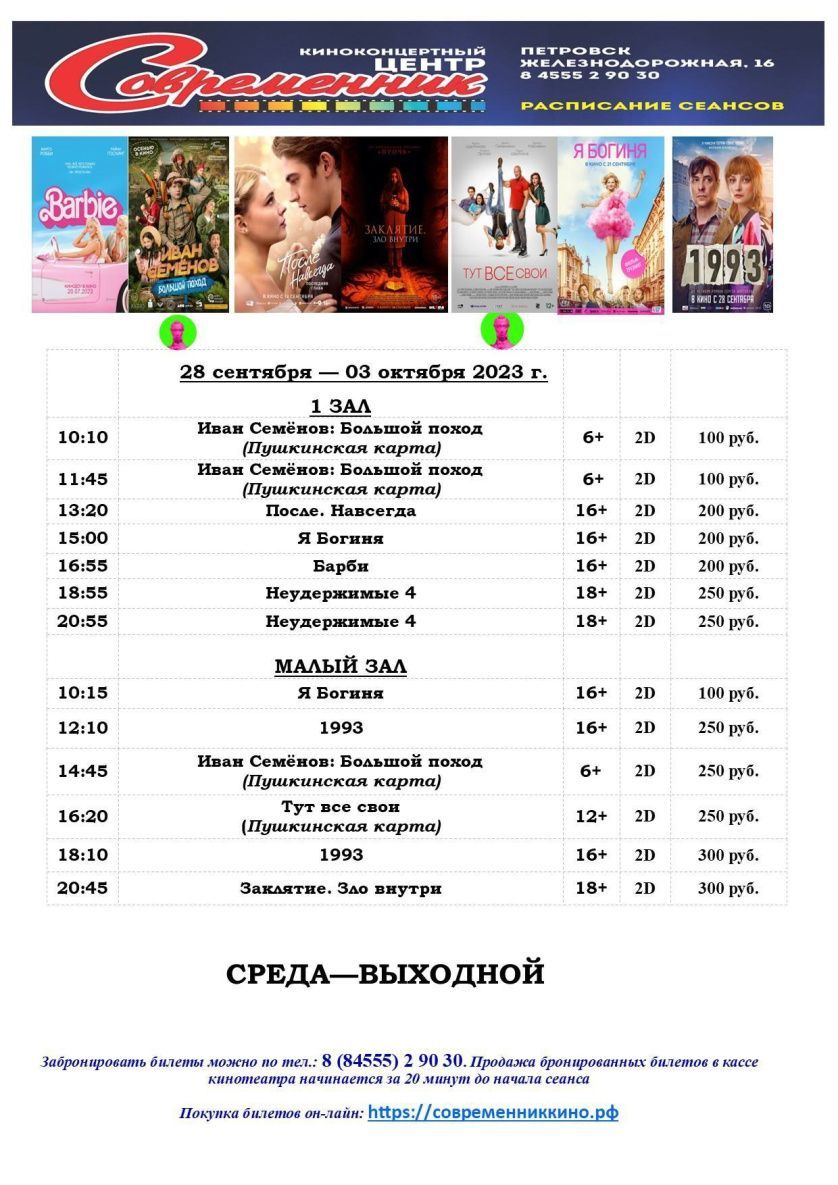 Новая афиша кинотеатра "Современник" с 28 сентября по 3 октября