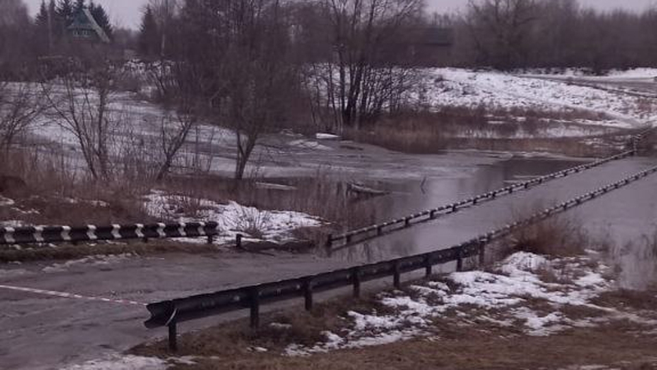 Воды Медведицы переливаются через низководный автомобильный мост на улице Карла Маркса в Нижней Красавке.