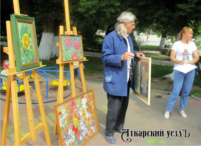 2 июня 2023 года Центральная библиотека и художник Петр Трущелев на Детской площадке городского парка Аткарска провели открытый урок по живописи «Лето. Цветы».