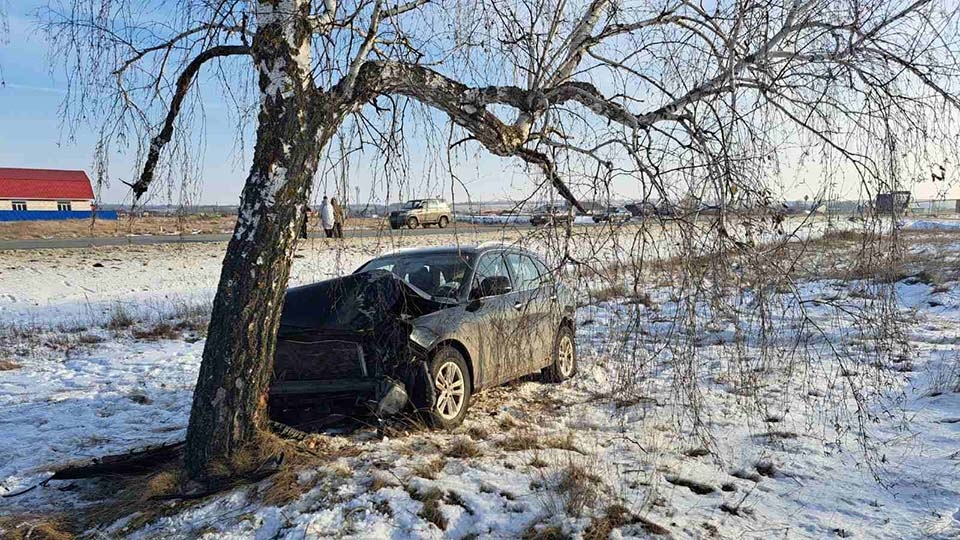 После столкновения китайский кроссовер слетел с дороги и затормозил в дерево.
