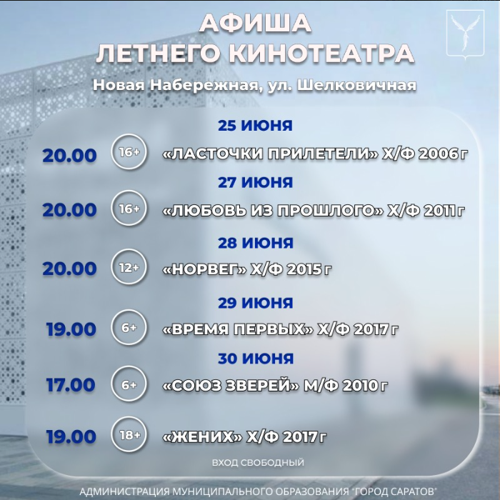 Представляем афишу Летнего кинотеатра на неделю