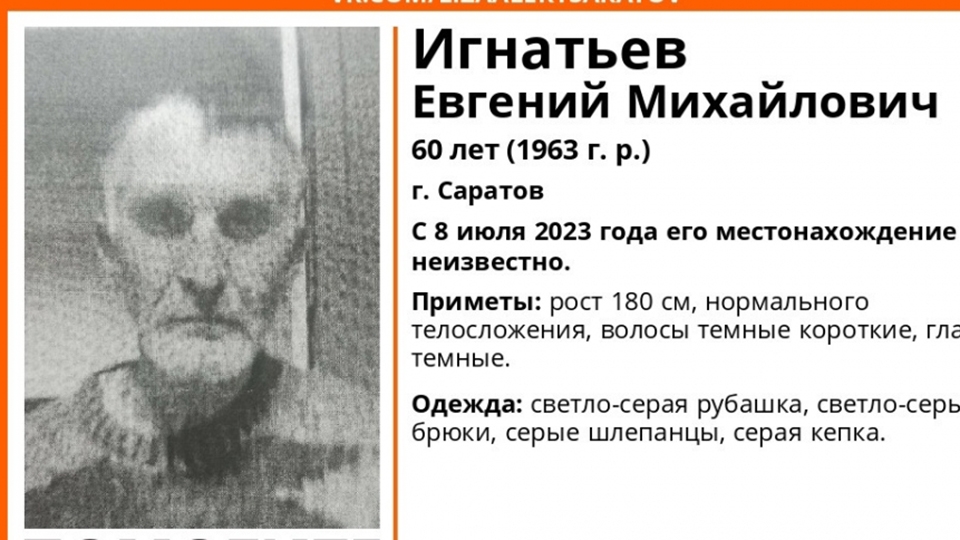 В Саратове нашли живым 60-летнего Евгения Игнатьева . Сегодня об этом сообщил поисковый отряд "Лиза Алерт Саратов".