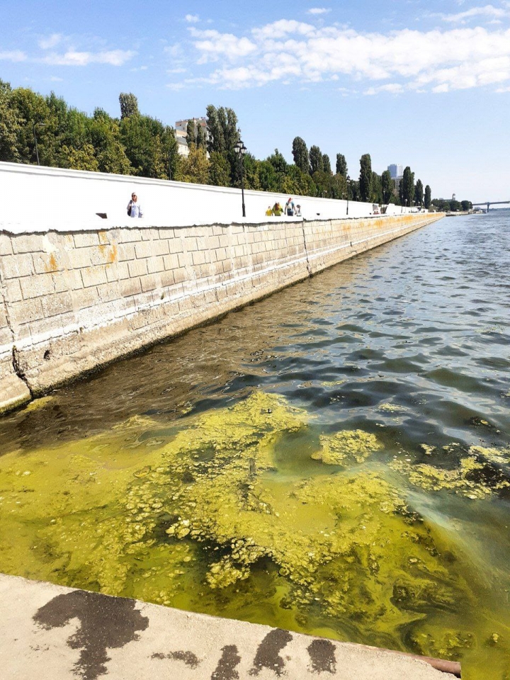 В Саратове вдоль акватории Набережной Космонавтов вновь зацвела вода и отросли водоросли.
