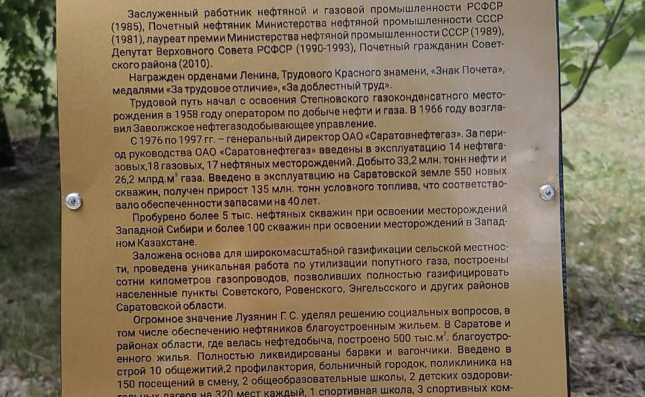 Рубрика "Работа с обращениями граждан" - рассказываем о том, как отрабатываются поступившие главе района обращения наших жителей на конкретном примере. 25 мая в ходе очередного приема граждан по личным вопросам, проводимого главой Советского района Сергеем Пименовым, обратилась Мартынова Светлана Геннадьевна, дочь выдающегося жителя Саратовской области и Заслуженного работника нефтяной и газовой промышленности РСФСР Лузянина Геннадия Сергеевича, по вопросу дополнения информации на информационной табличке отца, установленной в парке им. Г.С. Лузянина р.п. Степное. Глава района дал поручение начальнику отдела по молодежной политике, физкультуре и спорту и социальным вопросам Елене Ивановой проработать вопрос по замене имеющейся информационной таблички на новую с учетом дополнений заявителя. Замена информационной таблички в парке им. Г.С. Лузянина р.п. Степное произведена 3 июля. В соответствии с требованиями Федерального закона от 02.05.2006 № 59-ФЗ «О порядке рассмотрения обращений граждан Российской Федерации» с согласия Мартыновой Светланы Геннадьевны ей был дан ответ в устной форме.