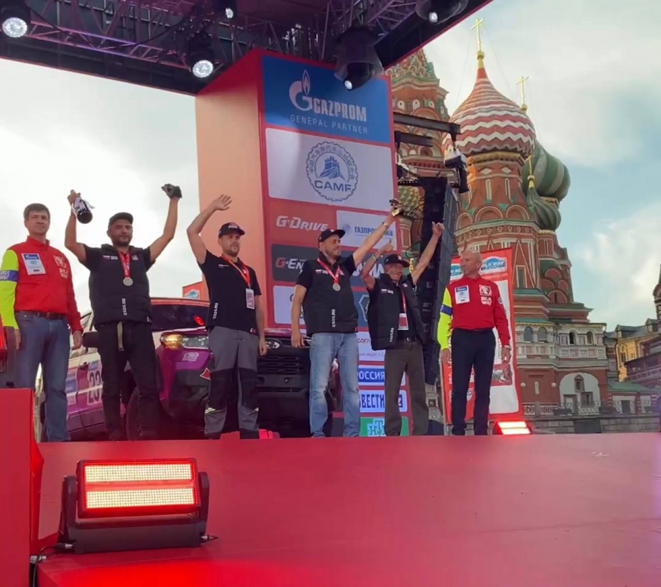 Экипаж из Саратовской области стал призером Международного ралли "Шелковый путь". На Красной площади прошла торжественная церемония финиша, сообщает региональное министерство спорта.