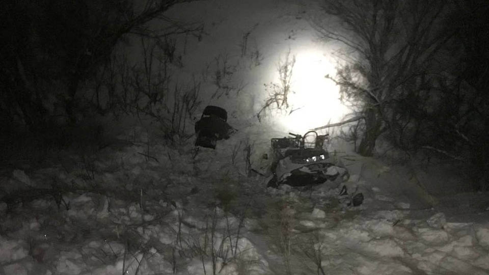 Снегоход с двумя мужчинами свалился в овраг. Их вытаскивали спасатели