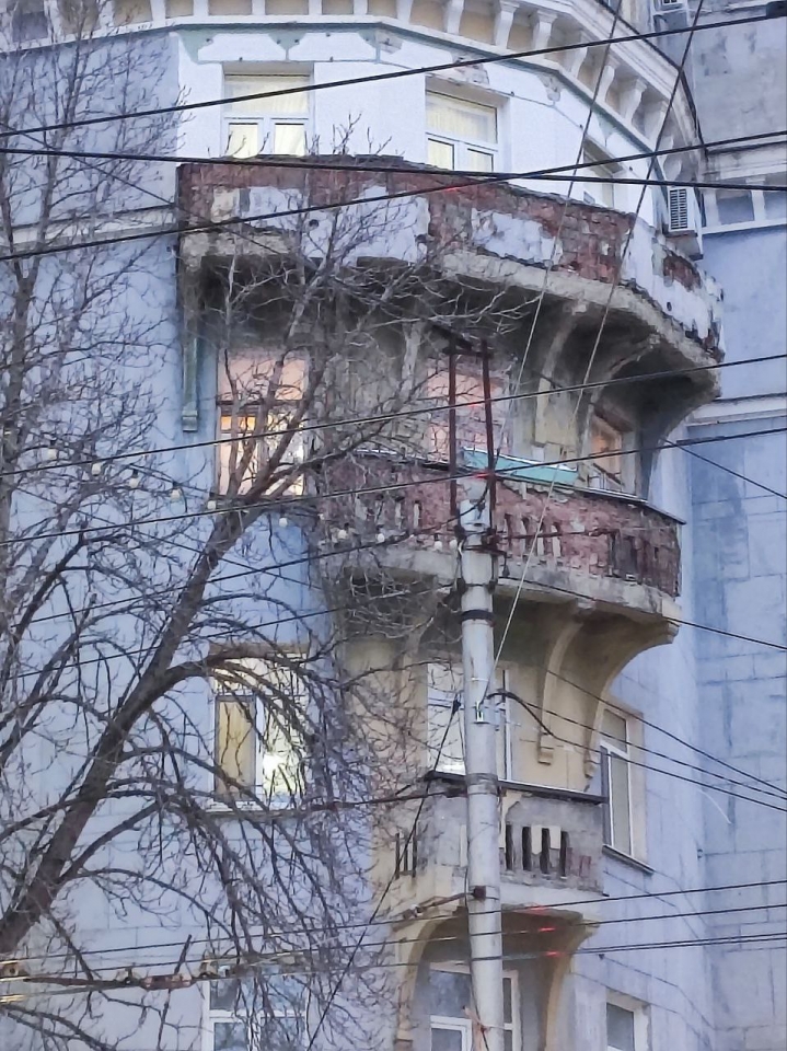 Со "сталинки" в центре Саратова продолжает падать штукатурка