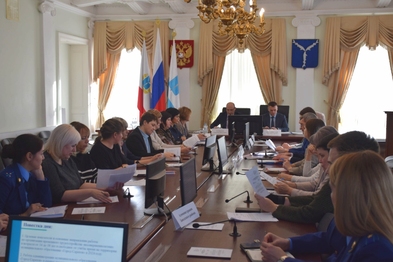 В мероприятии приняли участие представители государственной инспекции труда в Саратовской области, прокуратуры города и районов, министерства здравоохранения, регионального центра занятости населения, руководители структурных подразделений администрации.