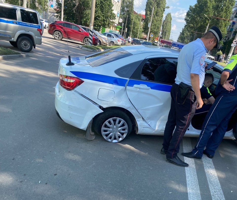 Сегодня в центре Балакова произошло ДТП с участием служебного автомобиля ГИБДД.