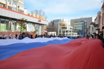 Сегодня, 4 ноября, огромный триколор развернули на пересечении улиц Волжская и Октябрьская. В акции приняли участие сотни студентов, а также представители национальных объединений Саратова.
