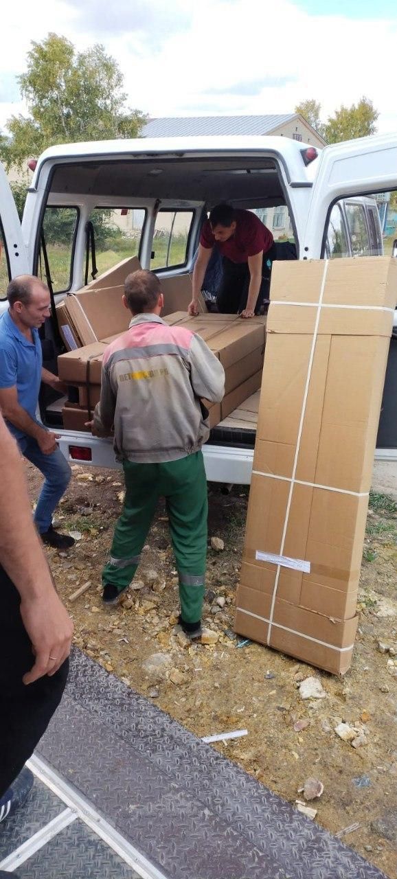 Работники хозяйственной службы Петровской районной больницы бережно обеспечили транспортировку, затем выгрузку и сборку на месте.