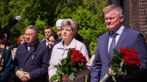 Присутствующие почтили память погибших минутой молчания и возложили цветы к мемориалу.