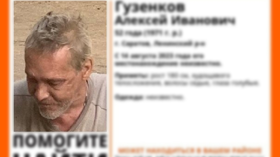 Без вести пропавший житель Саратова 52-летний Алексей Гузенков нашелся. Об этом сообщает поисковый отряд "Лиза Алерт Саратов".