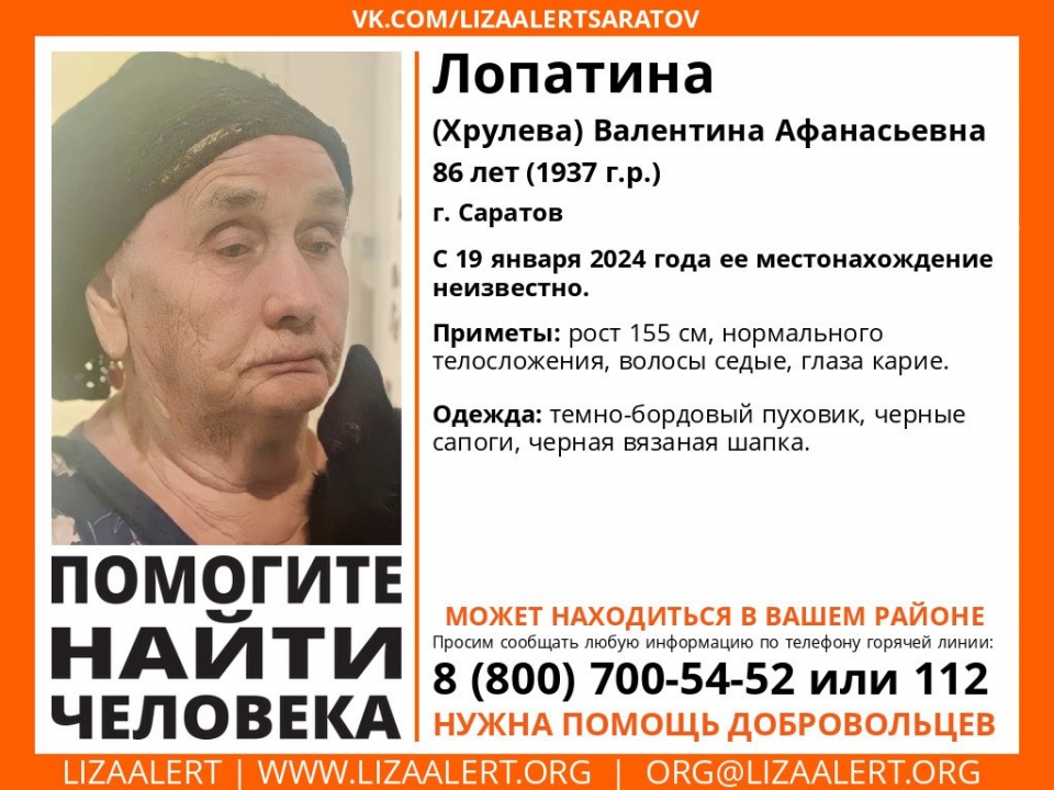В Саратове больше десяти дней назад пропала 86-летняя Валентина Лопатина (Хрулева).