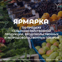 С 1 января по 30 июня на территориях Заводского, Ленинского, Октябрьского, Фрунзенского и Гагаринского районов будут работать ярмарки по продаже сельскохозяйственной продукции, продовольственных и непродовольственных товаров