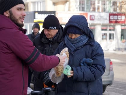 В Саратове продолжаются регулярные раздачи бесплатных обедов нуждающимся.