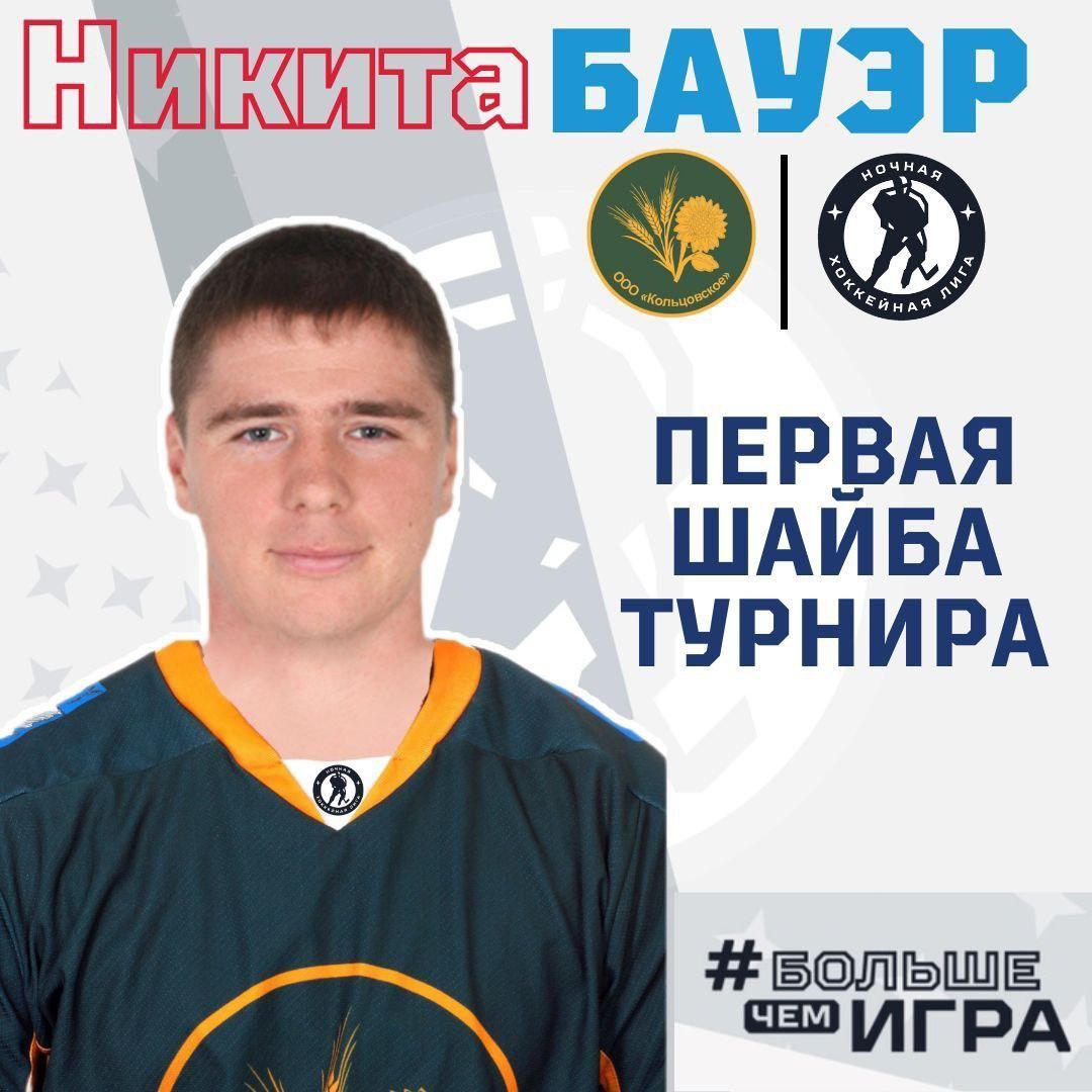 Первую шайбу турнира забросил хоккеист команды «Кольцовские» Никита Бауэр.