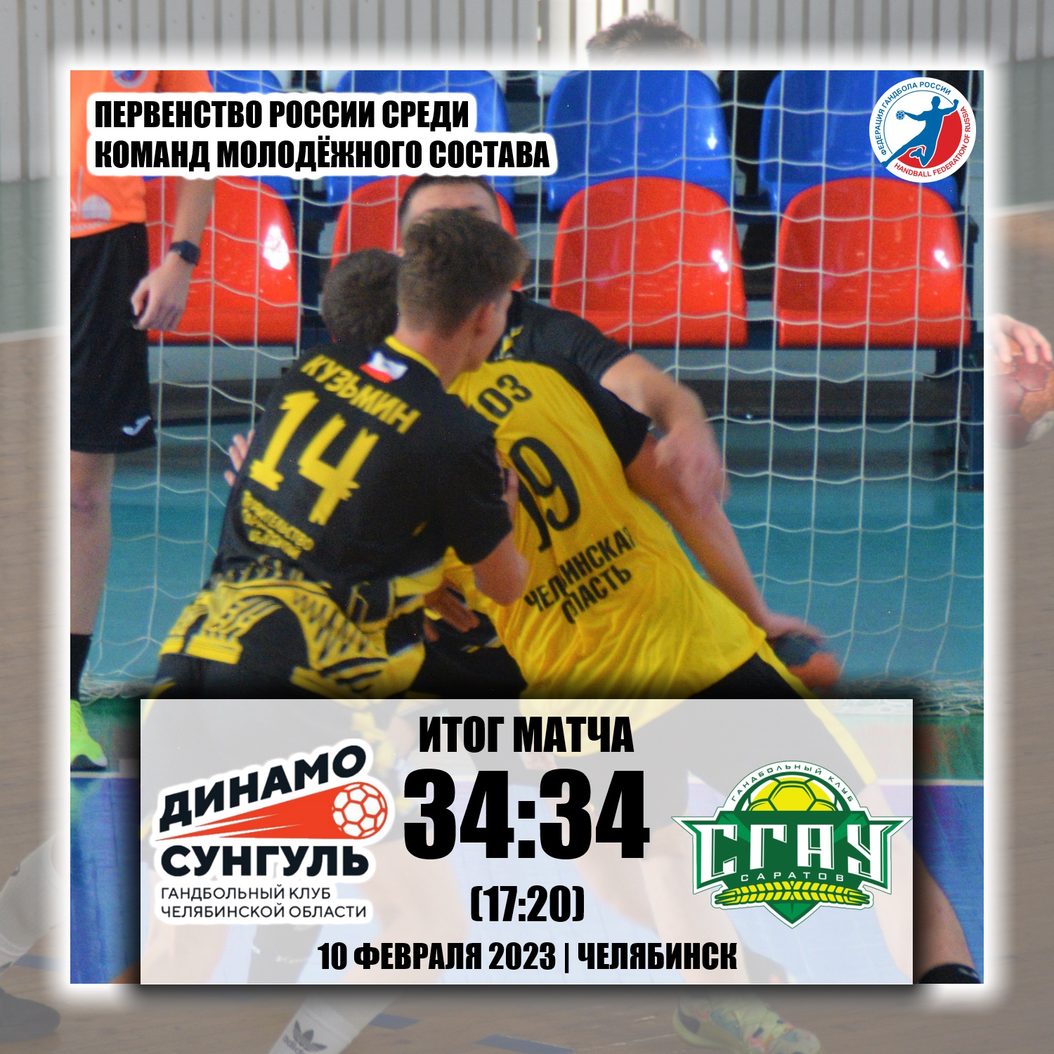 Сегодня "СГАУ-Саратов-2" провёл очередной матч первенства России среди команд молодёжных составов. На выезде наша команда играла против "Динамо-Сунгуль-2". Без нескольких лидеров саратовского дубля, которые были вызваны в главную команду, наша команда практически весь матч лидировала в счёте против "уральцев". Лишь в концовке встречи хозяева площадки вышли вперёд, но последняя атака оставалась за саратовцами. Был назначен свободный бросок, который Иван Гудков исполнял уже после финальной сирены. Обманными действиями левый полусредний "чёрно-жёлтых" запутал защитников и вратаря "Динамо-Сунгуля-2" и поразил ворота точным броском. 34:34 итоговая ничья, которая не может порадовать саратовский коллектив.