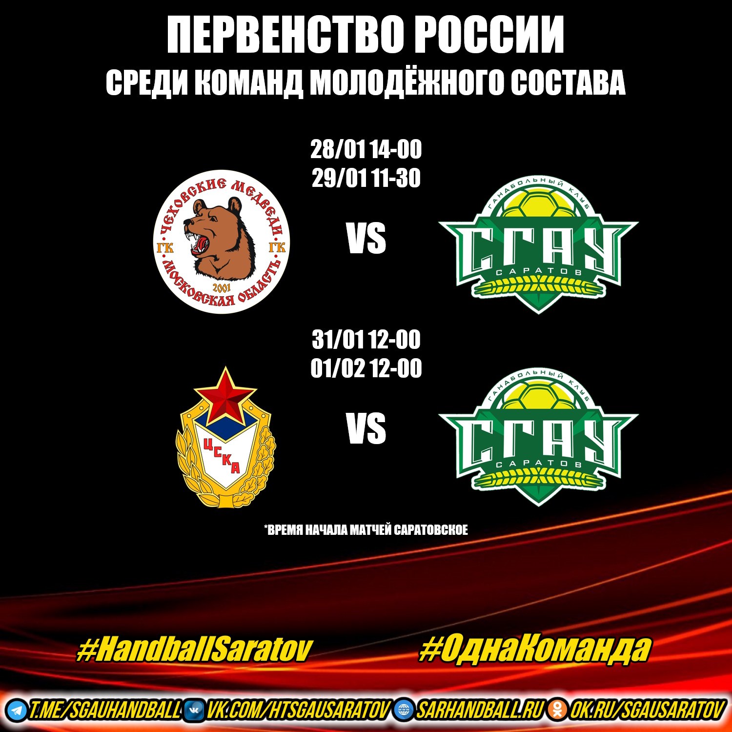 Время начала матчей саратовское.