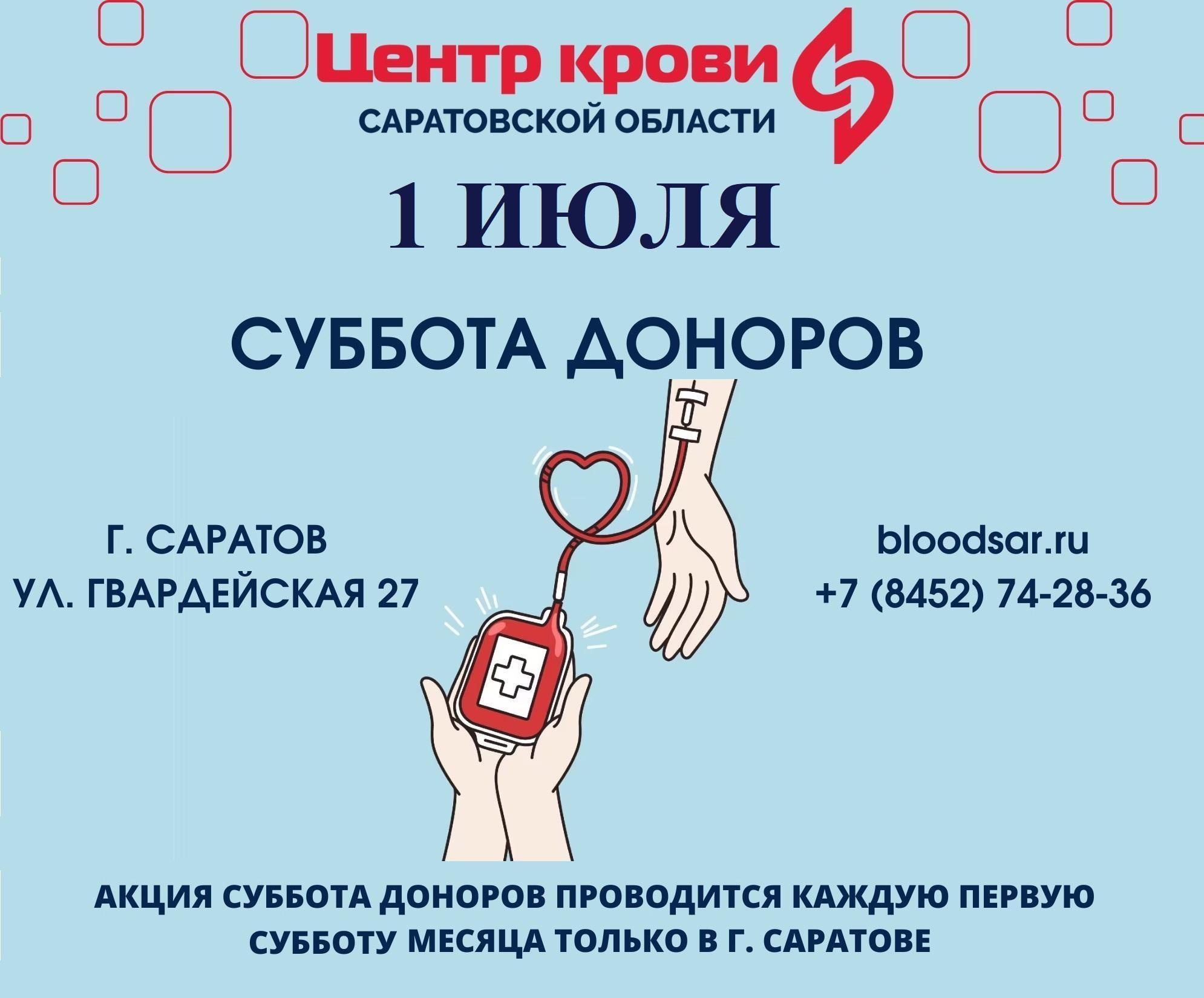 1 ИЮЛЯ — суббота доноров