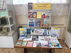 На выставке «Будь осторожен: наркомания!» представлена часть литературы, имеющейся в фондах библиотеки по этой теме. Помимо книг здесь широко представлен журнал «Нарконет», «Не будь зависим – скажи «нет!» наркотикам, алкоголю, курению, игромании» и другие периодические издания.