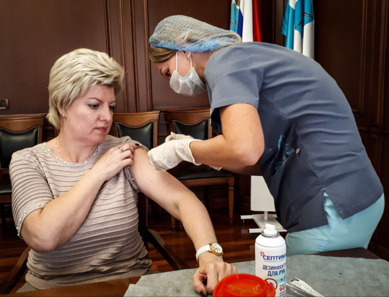 Сегодня глава города Лада Мокроусова в рамках кампании по вакцинации населения от гриппа и ОРВИ личным примером призвала горожан привиться перед началом эпидемического сезона.