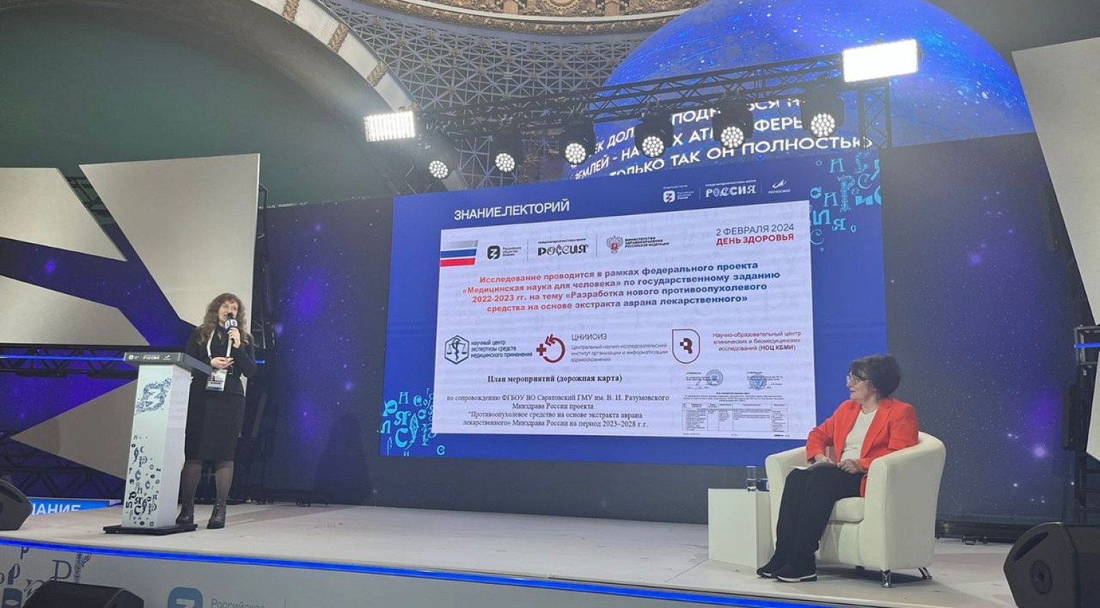 Директор научно-образовательного центра клинических и биомедицинских исследований Татьяна Калюта в рамках проведения экспертной панели по вопросам реализации федеральной инициативы «Медицинская наука для человека» выступает с докладом о достижениях Саратовского медуниверситета в области лекарственной терапии в онкологии.