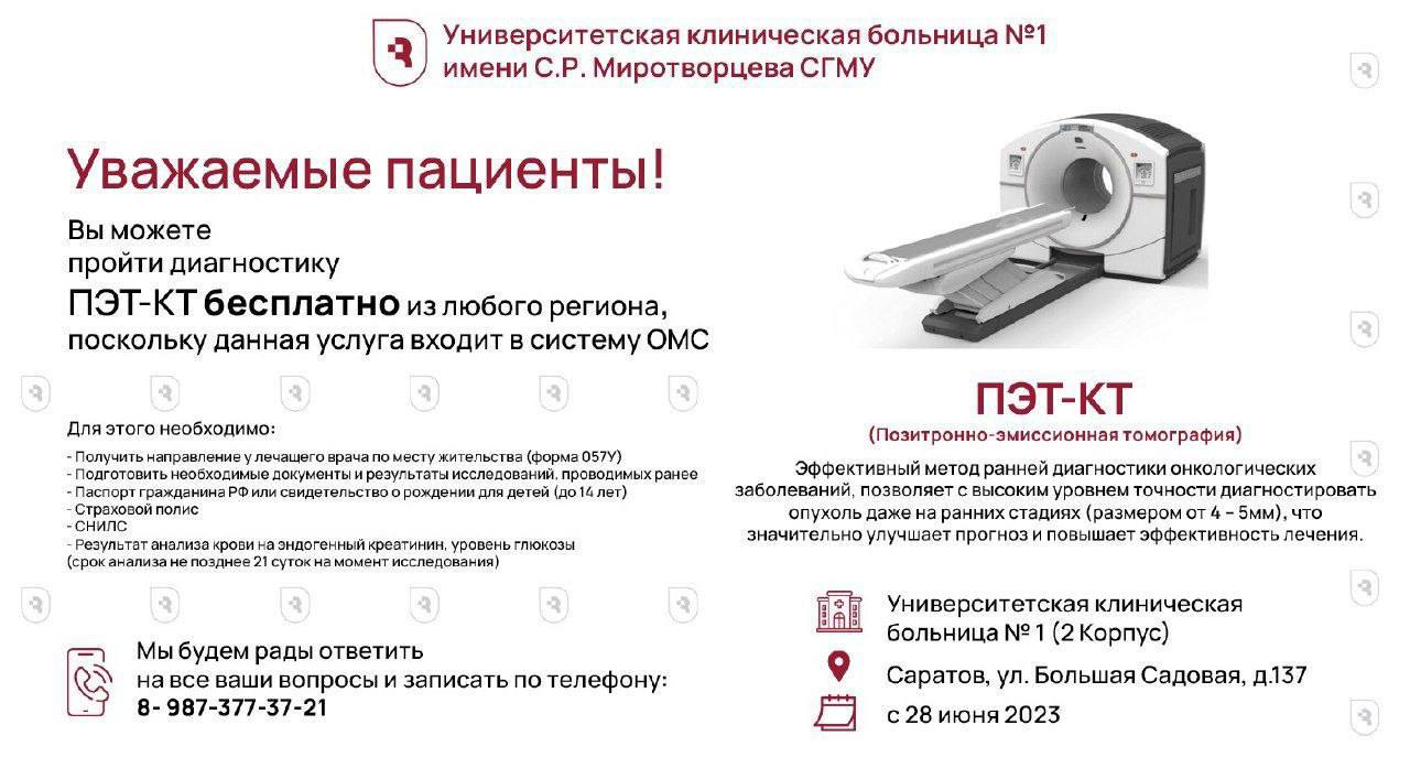 Исследование на ПЭТ КТ входит в систему обязательного медицинского страхования.