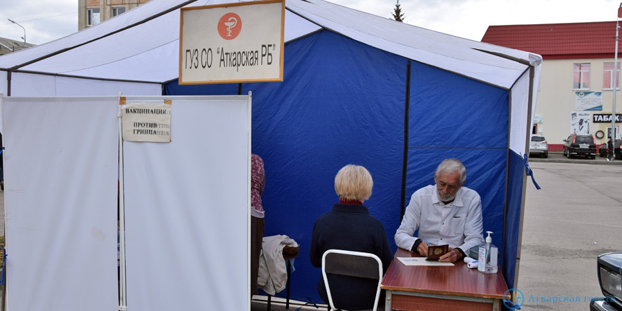 В выездном пункте вакцинации аткарчане прививались от гриппа семьями