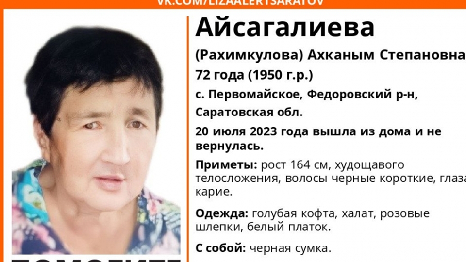 В Саратовской области нашли живой пропавшую 20 июля Ахканым Айсагалиеву (Рахимкулову) .