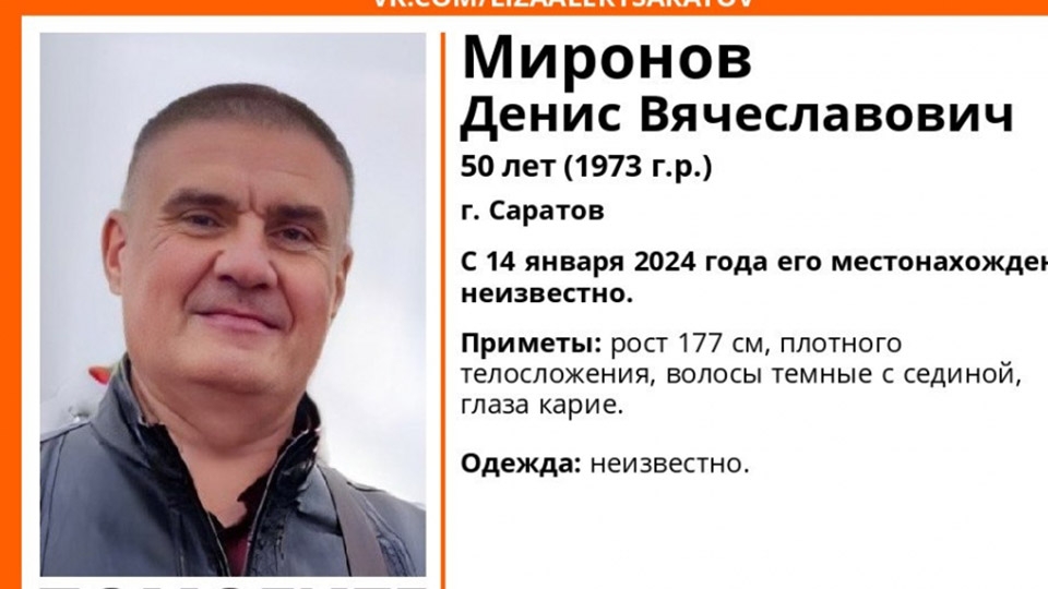 Пропавший без вести в Саратове 50-летний Денис Миронов найден живым. Сегодня об этом сообщил поисковый отряд "Лиза Алерт Саратов".